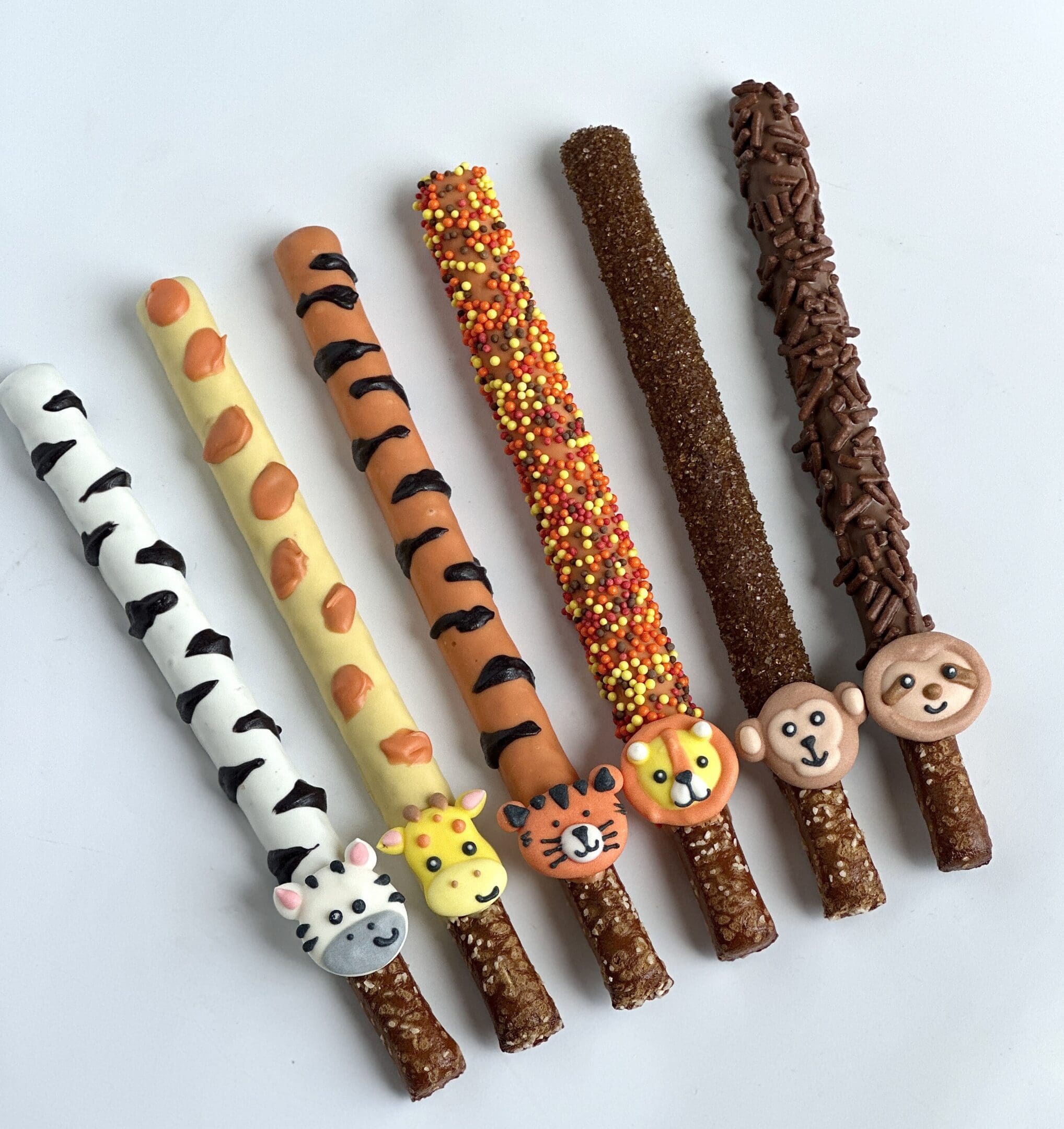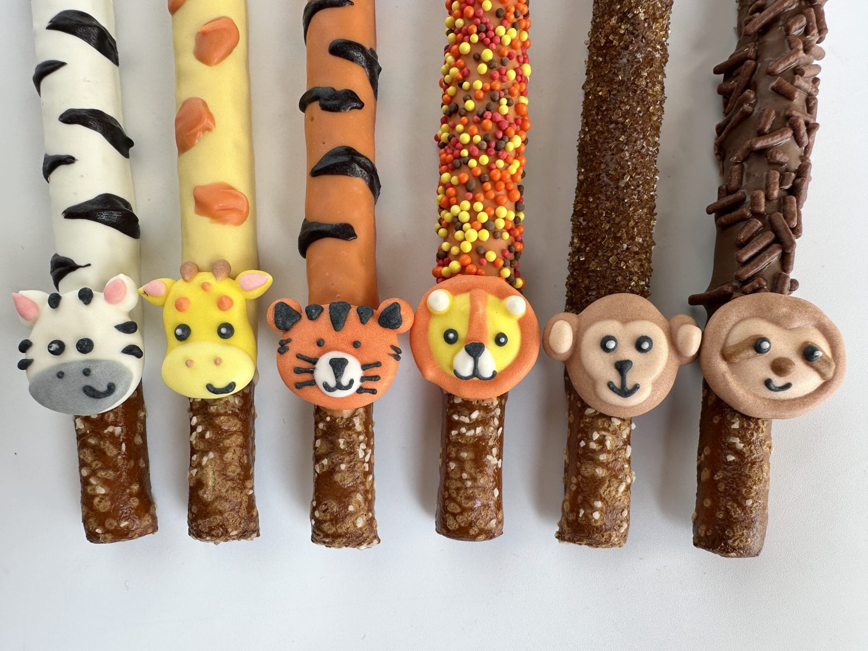 Every pretzel is uniquely designed with a variety of themed sprinkles, colorful sugars, and custom chocolate drizzles to match each critter’s personality and pattern. From zebra stripes to tiger tails, no two are exactly alike!