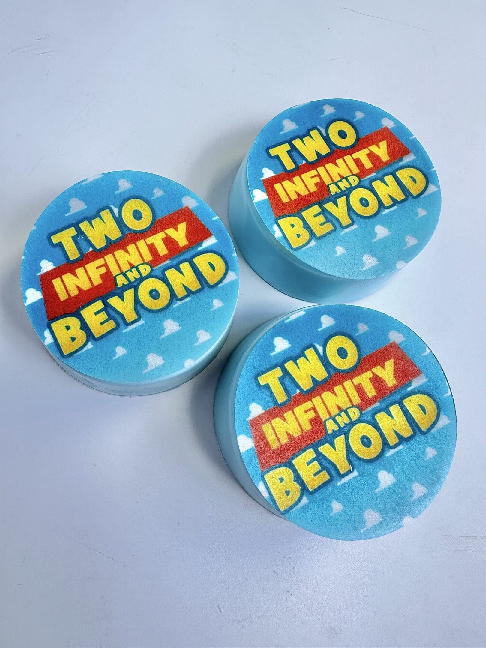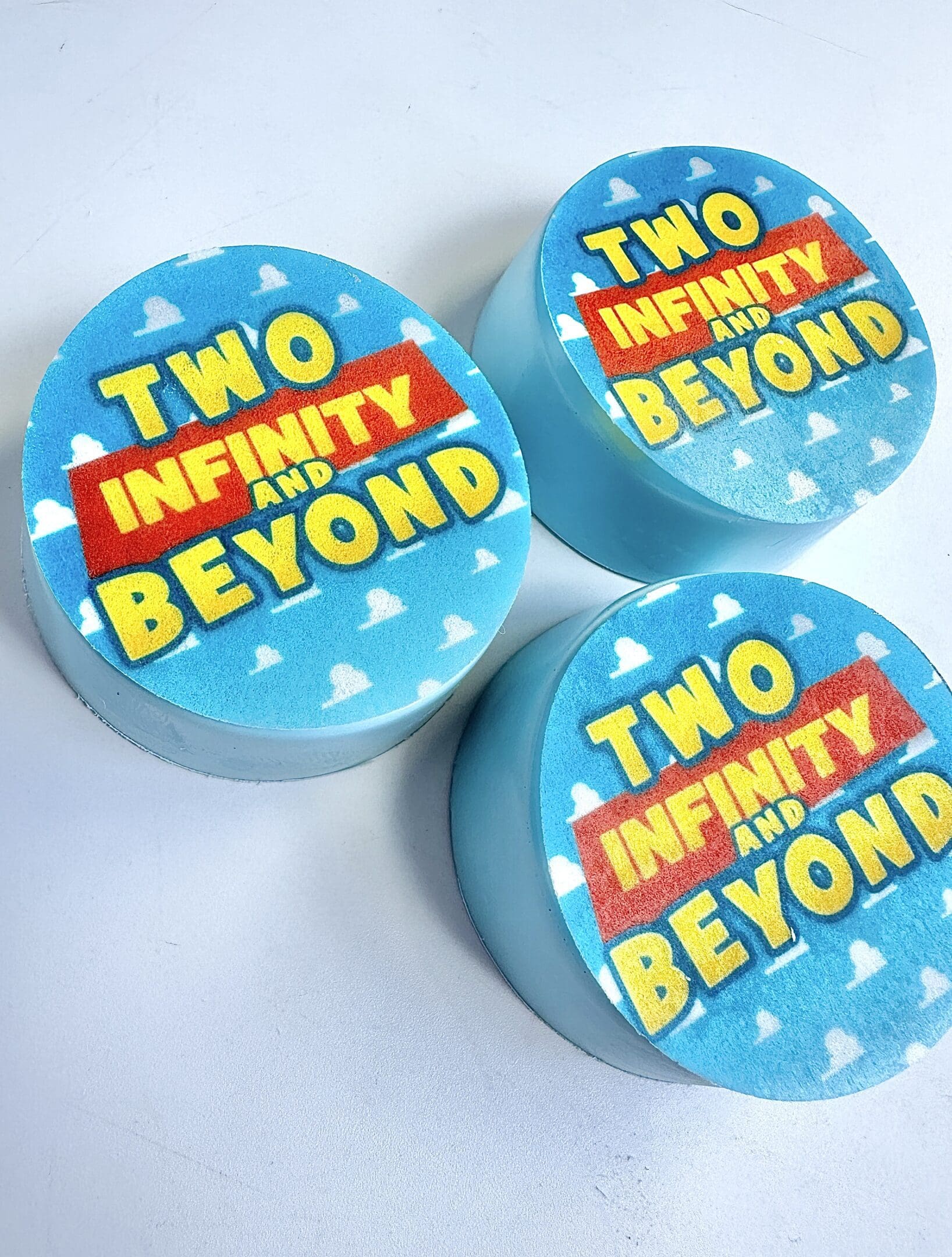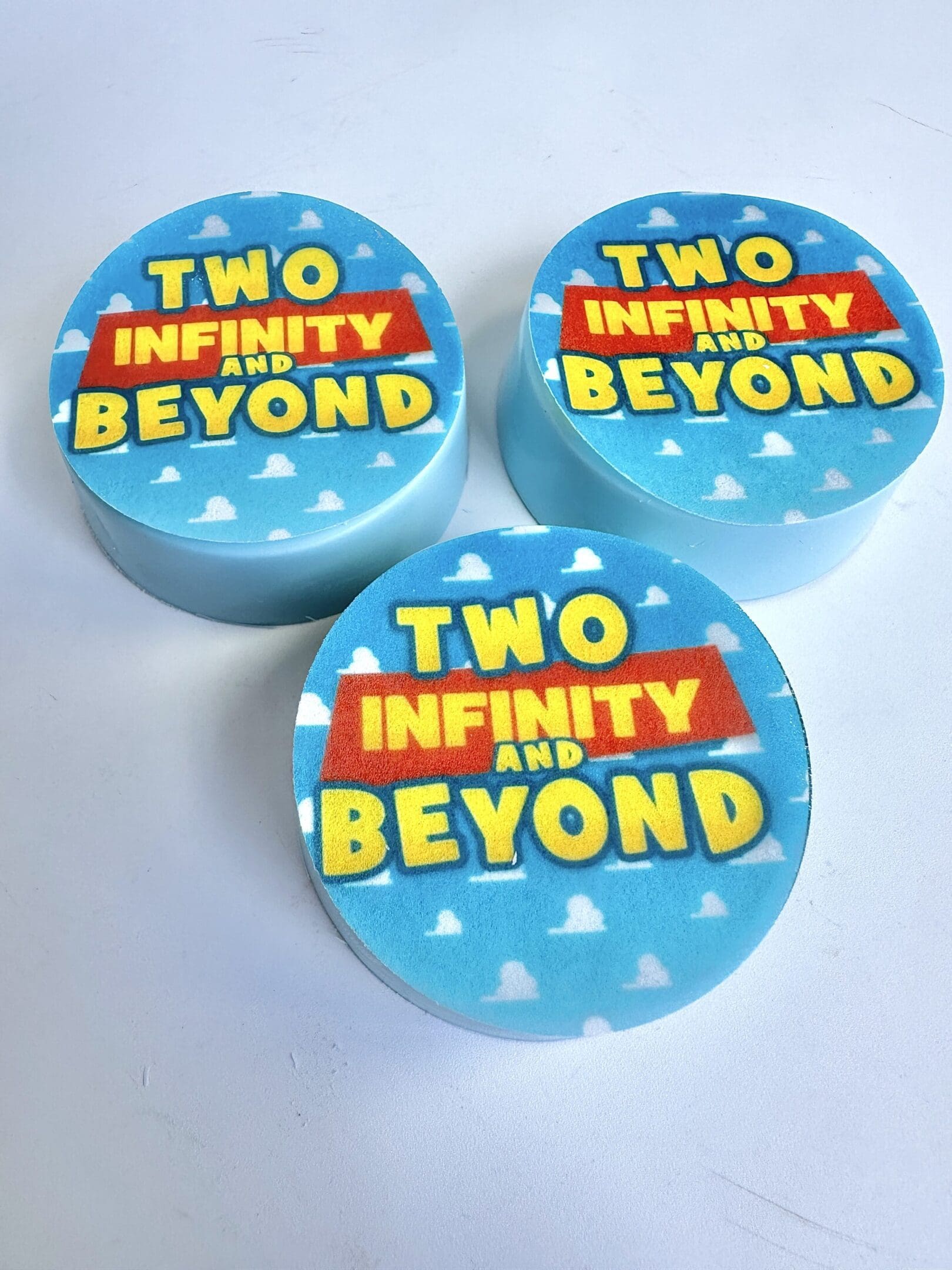 These fun Two Infinity And Beyond Toy Story Themed Chocolate Covered Oreos are just what you need for your next themed event. Each blue chocolate covered Oreo will be topped with an edible rice paper decoration. Perfect for that special 2 year old birthday party.